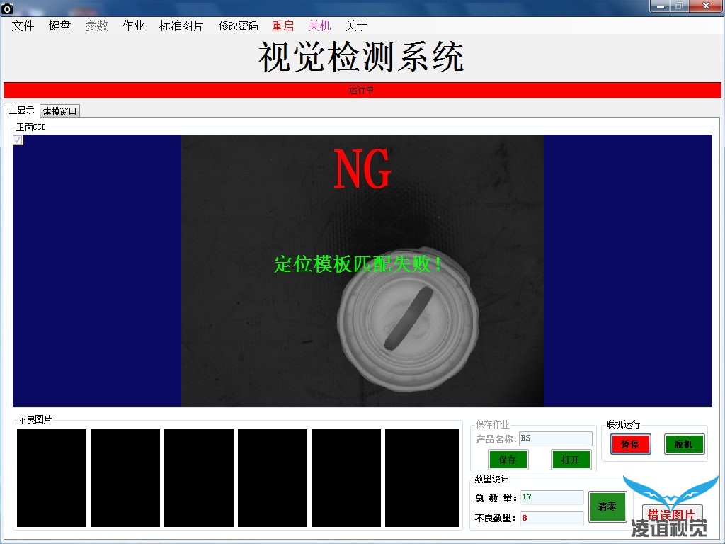 采用振蕩進(jìn)料方式,凌誼視覺檢測(cè)設(shè)備使用CCD工業(yè)相機(jī)實(shí)時(shí)獲取在線瓶蓋的圖像,通過(guò)圖像定位和分析確定其是否滿足要求,對(duì)藥用瓶蓋的正反面、內(nèi)部、側(cè)面360 度進(jìn)行檢測(cè)。并輸出控制信號(hào)以檢測(cè)和剔除不良瓶蓋,檢測(cè)速度可以達(dá)到1200個(gè)/分鐘。